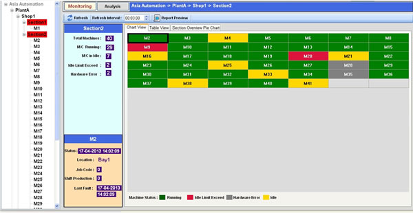 - Monitors plant performance – detail down time analysis for greater asset utilization.