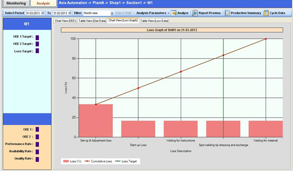 - Period-wise, shift-wise, operator-wise or product-wise analysis is possible.